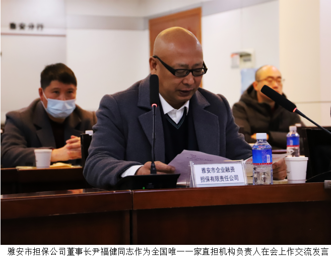 雅安市擔(dān)保公司董事長(zhǎng)尹福健同志作為全國(guó)唯一一家直擔(dān)機(jī)構(gòu)負(fù)責(zé)人在會(huì)上作交流發(fā)言